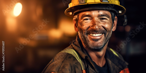 Fototapeta premium Latino miner working, smiling at camera