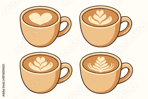 Obraz premium Latte Art Collection Heart and Leaf Designs in Coffee Cups.