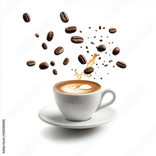 © jogeromonstero, Obraz premium Latte with coffee beans exploding in a splash
