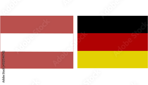 © Usama, Naklejka premium Latvia Official flag with Germany national flag, both countries flags in Horizontal shape and isolated on white background Rectangular colorful design Flag with together.