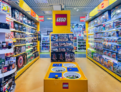 © Tanya Keisha, Naklejka premium LATVIA, RIGA, MARCH, 10, 2025: Large Lego department in Stockmann shopping mall, Riga. Latvia