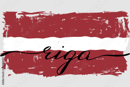 Obraz premium Latvian flag riga painted grunge flag handwritten text vector
