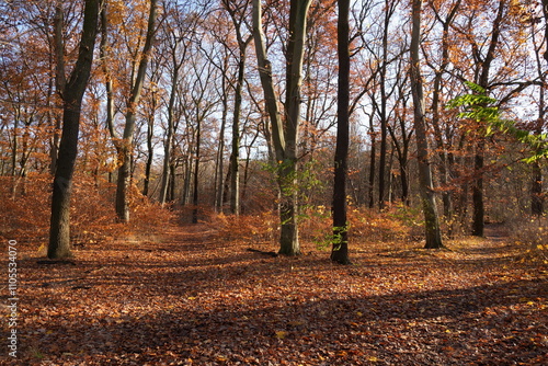 Fototapeta premium Laubwald im Spätherbst bei strahlendem Sonnenschein