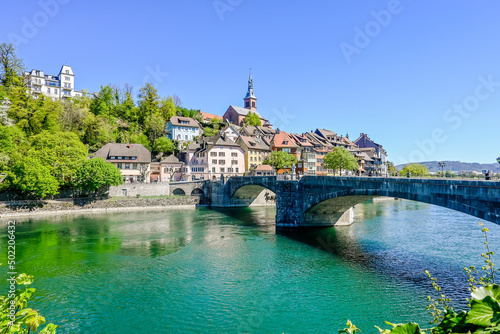 Fototapeta premium Laufenburg, Laufenburg Baden, Altstadt, Heilig Geist, Kirche, Laufenbrücke,...