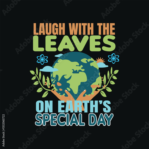 Naklejka premium LAUGH WITH THE LEAVES ON EARTH'S SPECIAL DAY- INTERNATIONAL EARTH DAY T-SHIRT DESIGN