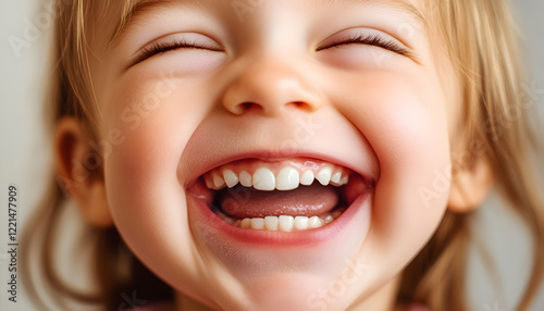 © Umar Arts, Fototapeta premium Laughing baby child teeth.