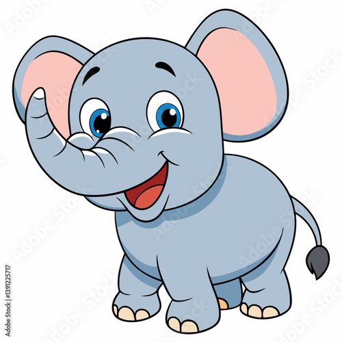 © MDSHOFIULAZAM, Naklejka premium Laughing Baby Elephant Cartoon: Cute & Funny Vector Design Illustration