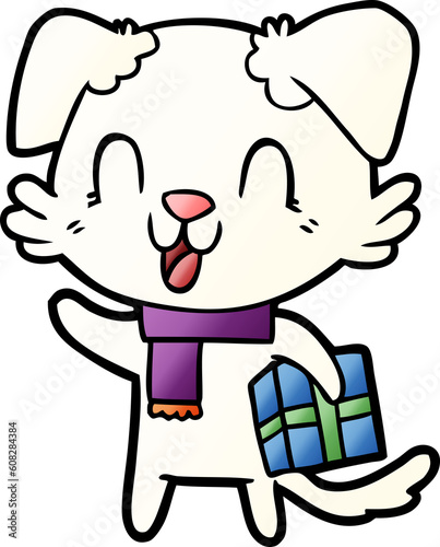 © lineartestpilot, Fototapeta premium laughing cartoon dog with christmas present