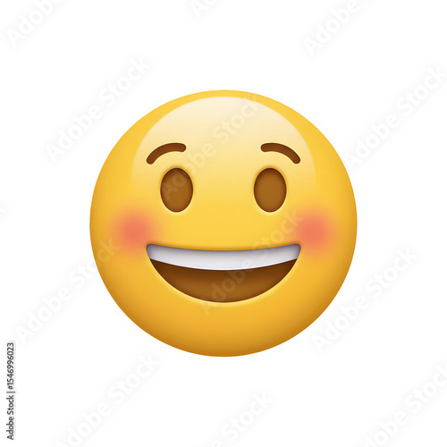 © chalindu, Fototapeta premium Laughing emoji face with broad smile and closed eyes on white background