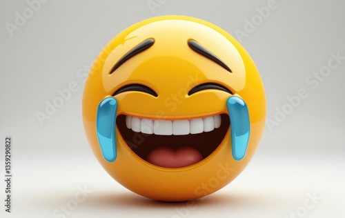 Fototapeta premium Laughing Emoji Tears of Joy Isolated on White Background Concept