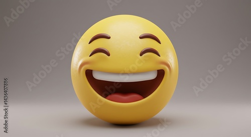 © Awan, Fototapeta premium Laughing Expression Yellow Face with Closed Eyes and Big Smile