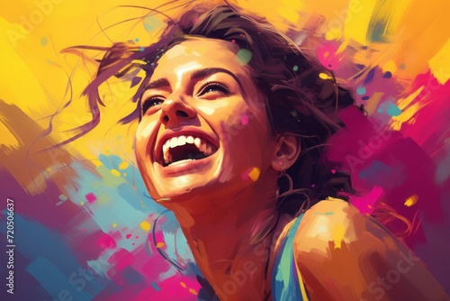 Fototapeta premium laughing Indian girl, female person at the Holi festival, colorful realistic illustration.