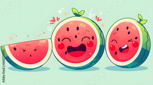 © Ky, Fototapeta premium laughing watermelon monster sticker flat vector