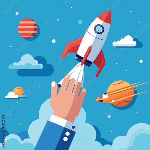 © Nurtaz, Naklejka premium Launching Your Business A Rocket to Success - Vector Illustration