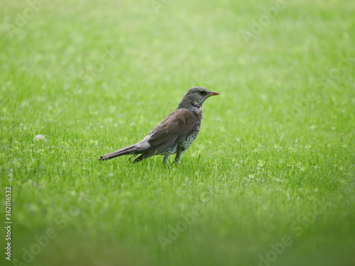 Obraz premium Laupheim, Deutschland: Eine Wacholderdrossel auf der Wiese