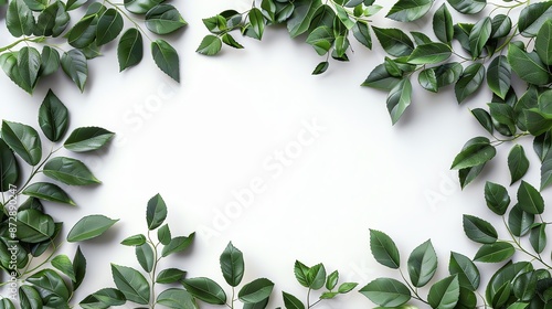 © Sirirat, Naklejka premium Laurel leaf frame clipart, foliage border, 3D illustration, dark green, isolated on white background,