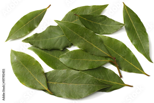 © Dmytro, Obraz premium Laurel leaves isolated on a white background top view
