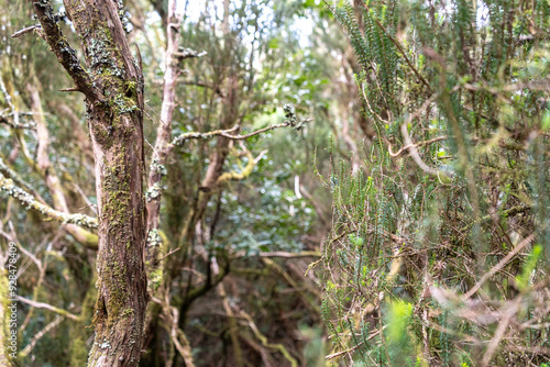 © artemstepanov, Fototapeta premium Laurel Park rural de Anaga, Tenerife lush greenery, walking paths, recreational area, local flora public park
