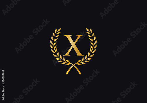 © Nasir Stock Photo, Obraz premium Laurel wreath logo and Vintage wheat circle leaf icon design with letters. Laurel wreath leaf circle letters favicon and icon