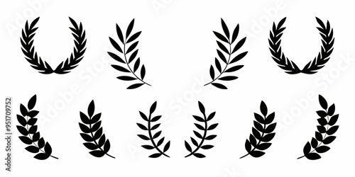 © MDMAHBUBUR, Fototapeta premium Laurel wreath silhouette vector collection