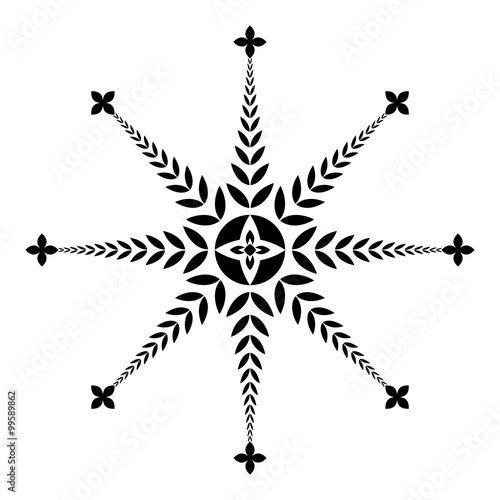 © valeriaz, Fototapeta premium Laurel wreath tattoo icon. Aster sign of eight rays. Black ornament on white background. Defense, glory symbol. Vector