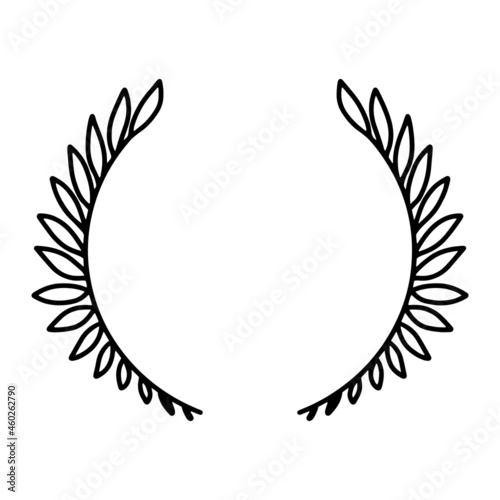 Fototapeta premium Laurel wreath. Vector hand drawn laurel wreath isolated on white background. Doodle style. Outline floral frame.