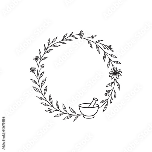Fototapeta premium laurel wreath with mortar and pestle vector