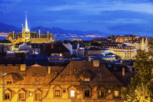 © Henryk Sadura, Obraz premium Lausanne panorama with Saint-Francois Church
