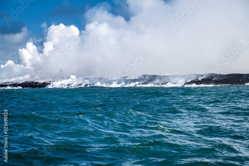 © Billy, Fototapeta premium lava coast steam rising to the sky