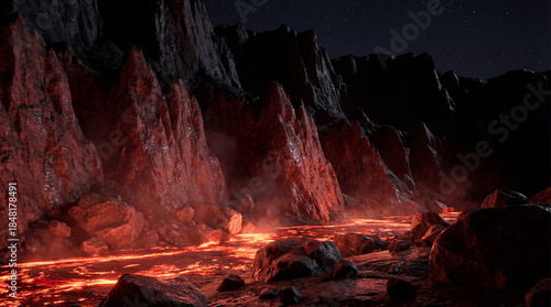© Alexander, Obraz premium Lava flowing through rocky terrain at night
