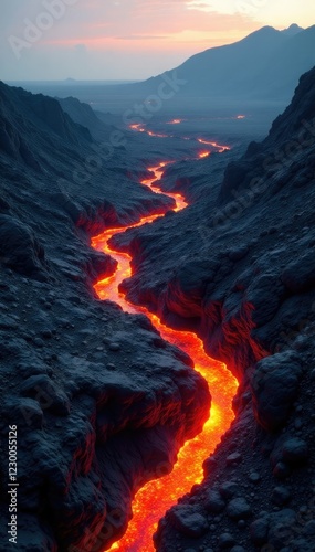 Obraz premium Lava flows through a barren landscape of volcanic rock, nature, natural wonders
