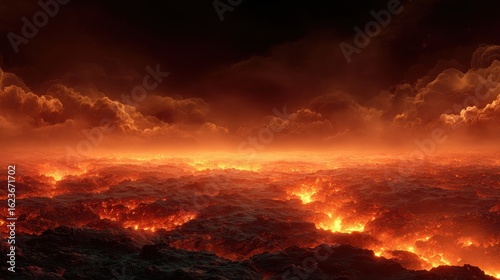 Fototapeta premium Lava Planet: Fiery Clouds and Molten Surface