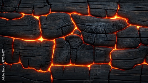 Obraz premium Lava texture with glowing cracks, black background