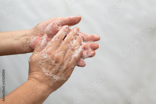 © Celeste, Fototapeta premium lavando manos jabón