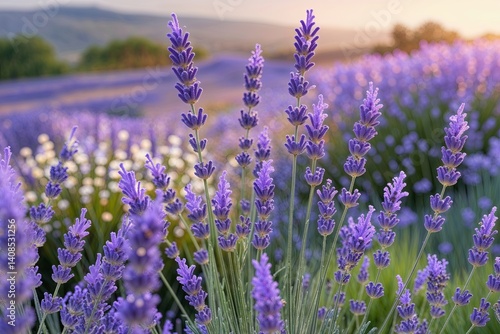 Naklejka premium Lavender Blooms in a Serene Meadow of Natural Beauty and Peacefulness