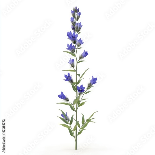 Fototapeta premium Lavender-blue bellflower plant isolated on white.