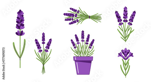 © Kaca, Obraz premium Lavender botanical vector design set on white backdrop