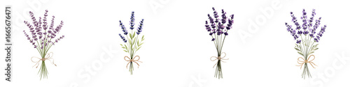 © NRD, Naklejka premium Lavender Bouquet Illustrations: Fragrant Purple Flowers with Green Stems