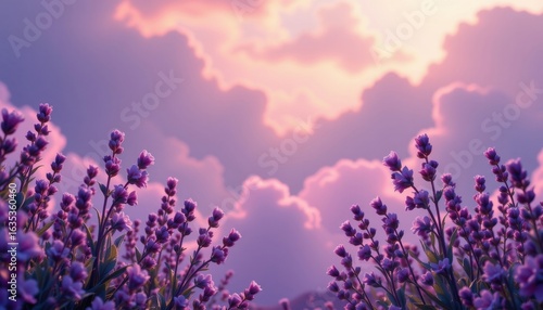 © mod, Naklejka premium lavender dream background with dreamlike mood, matte finish, ambient lighting, and soft clouds