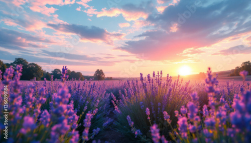 © De, Fototapeta premium lavender field at sunrise