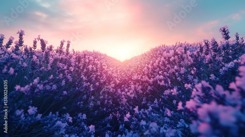 Naklejka premium Lavender field at sunset