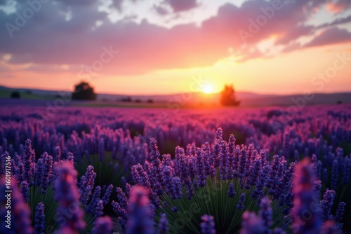 © Arie, Fototapeta premium Lavender Field at Sunset Glow