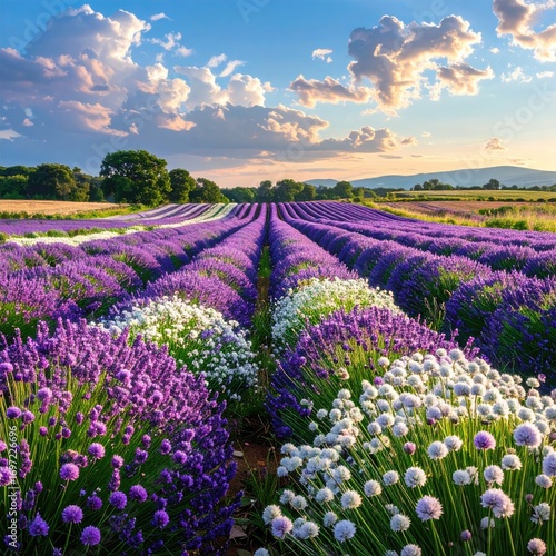 Fototapeta premium Lavender field at sunset, vibrant colors (1)