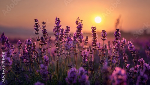 © aandd, Naklejka premium Lavender field at sunset; warm light