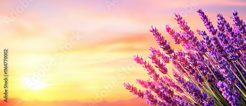 Naklejka premium Lavender field at sunset with vibrant colors and flowers