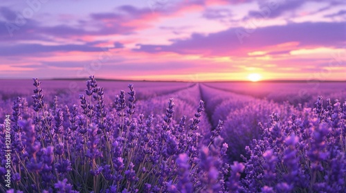 © Sam Design, Naklejka premium lavender field dusk romantic serene background for nature-inspired love designs