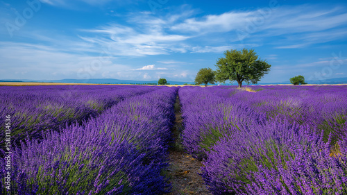 Obraz premium Lavender Field in Full Bloom Under Clear Blue Sky no blur, clear view, real...