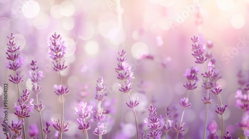 © Imsuniyah, Naklejka premium Lavender Field in Soft Sunlight