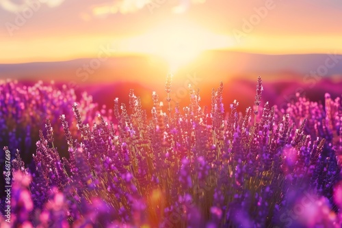 Naklejka premium Lavender Field Sunset