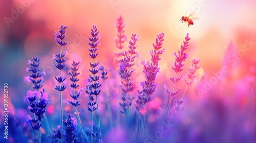 Obraz premium Lavender Field Sunset: A Bee's Flight